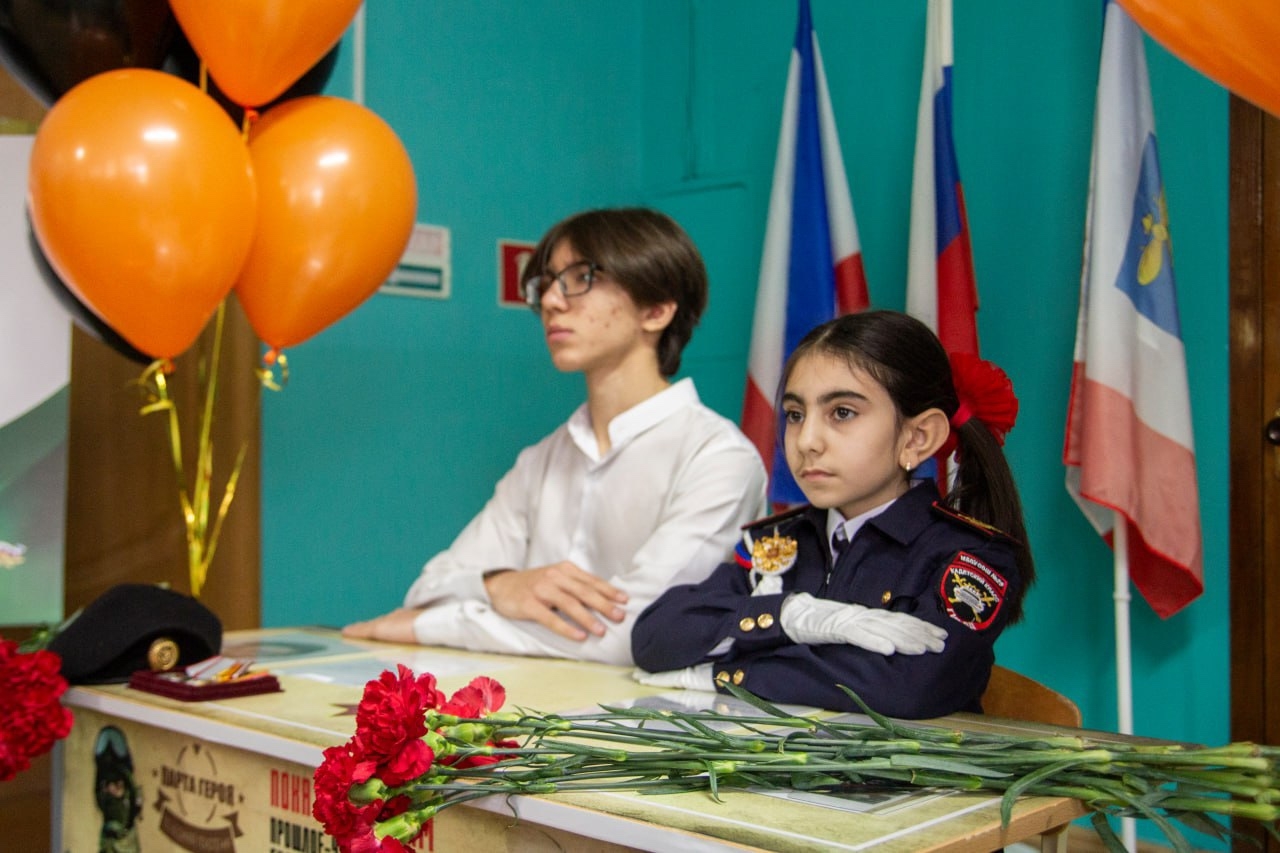 Почётное право первыми сесть за Парту Героев предоставили племяннику погибшего Острикова Сергея Павловича,ученику 10-А класса нашей школы, Острикову Ставру, и ученице кадетского 2-А класса – Геворгян Элен.
