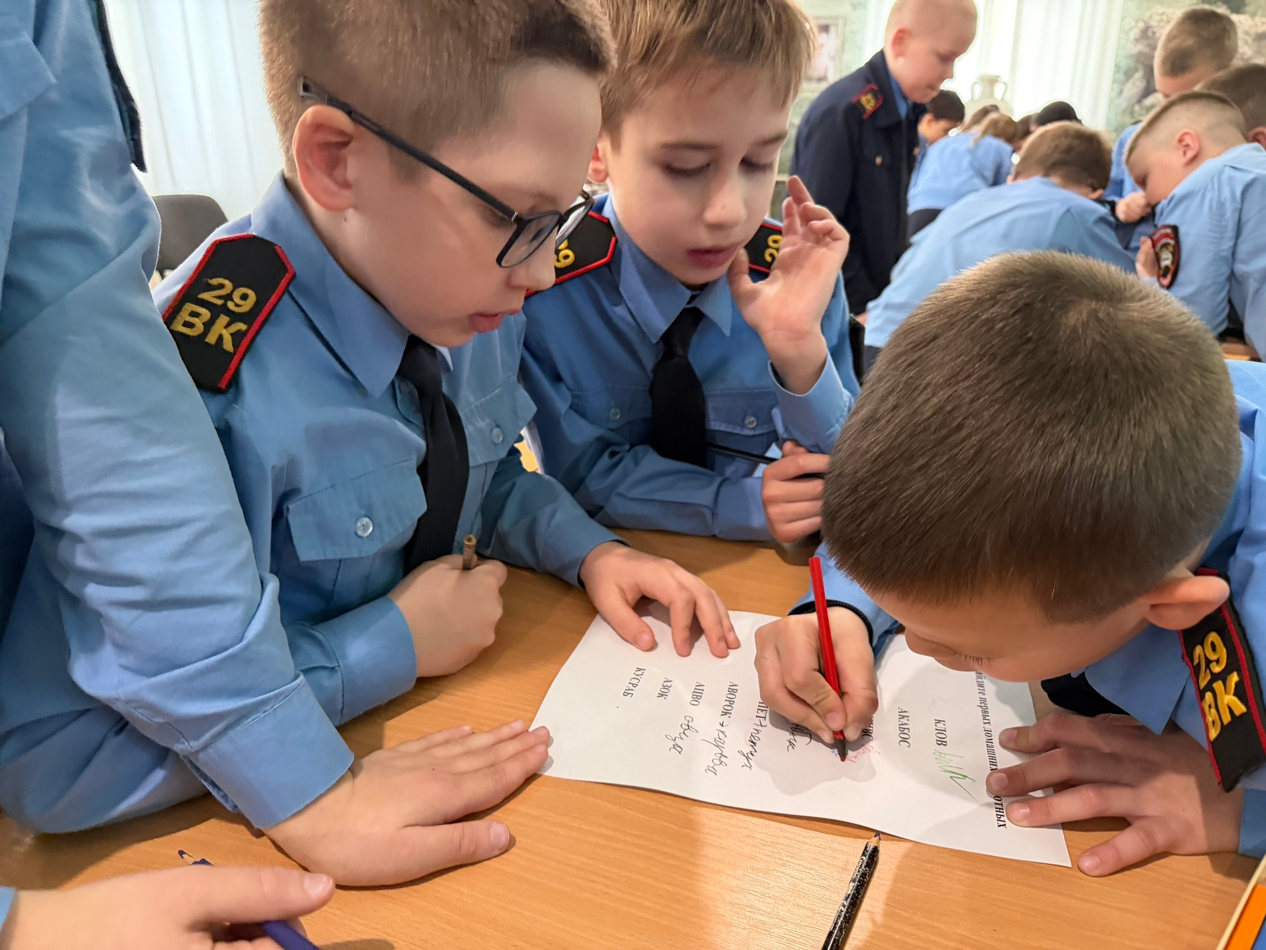 Затем школьников ожидал очень интересный интерактив. Юные кадеты мастерили орудия труда прошлого, изображали жилища древнего человека и, даже сами, представились в роли первобытных людей! Каждому участнику была дана возможность проявить себя и ощутить свою сопричастность к истории.